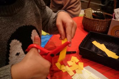 桟敷席のシートに直座り、椅子席、ベビーカーに乗せながら、抱っこしながら立って、親は映画子どもはキッズスペースなど。それぞれの過ごし方で90分強の映画をみんなで見ました。キッズスペースにいた子ども達はモンテッソーリの先生方のご協力もあり、驚くほど集中して静かに過ごしてくれました。