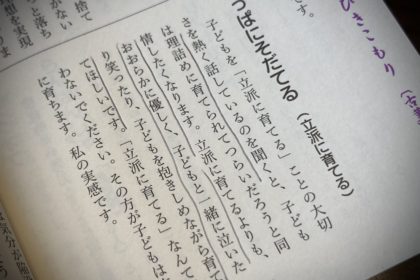 「失敗は友達」の魔法の言葉を自分に唱えながら、子どもがやってみて上手くいかなかったときは、ダメなことと評価せず、こばした後の片付け方を教えよう、というのが前回のお話。 どんな小さな挑戦でもそれ自体を認め、ともに笑い泣いて … 続きを読む 【ブログ】乳幼児期の大切さ〜ひきこもりの言葉からの学び