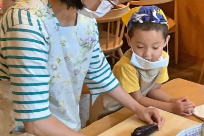 理恵さんのお話を聞いて、調理のどの工程でも「ゆっくり見せる」ことがポイントで、これは日常生活で家事をお手伝いしてもらう時の声がけ、見せ方のポイントにもなり、家事を一緒にやることがストレスになるのではなく、親子共にハッピーな時間になると思いました。