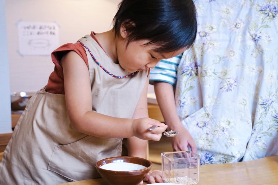 すべての工程を子どもにやってらおう!とすると、子どもとの調理は親子ともストレスになってしまいがち。一つの工程だけでもいいんです。飽きてしまったら途中は絵本読んだり遊んでいても大丈夫との理恵さんの言葉に驚きました。