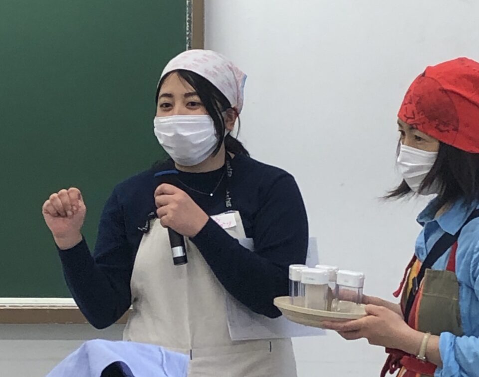 炊飯器で料理ができあがるのを待つ間に、モンテッソーリ教師の小倉有可里さんに五感の大切さのお話とハーブやコーヒーなど香りバイキングを行いました。もしかすると普段接したことのない香りに触れられたかも。気に入った香りを2つ、大切に瓶に詰めて持ち帰ってくれました。